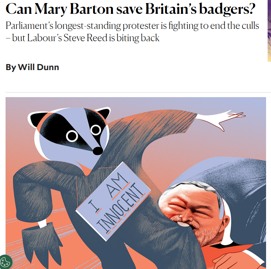 On 13th October, there was a much awaited Westminster Hall debate (view here) on ending badger culling, precipitated by a 100,000 parliamentary petition coordinated by the successful lobbyists and wild animal protection advocates Protect the Wild. Although the two-hour session was a massive improvement on previous dreadful badger cull debates (reflecting the cull of dinosaur politicians lost in the 2024 general election), it remained (perhaps not surprisingly) ‘behind the curve’ on recently published science. Happily, the majority of voices spoke earnestly about a wish to stop badger culling and address TB testing failures and to manage the disease effectively. Minister Angela Eagle reaffirmed Labours commitment to ending the badger cull by the end of this Parliament, with the possibility of all culls ending in 2026 following a review of the last cull area (no. 73) in Cumbria in the New Year. However, it is likely that Defra will do everything in its power to prevent this, via introducing TVR pilots.